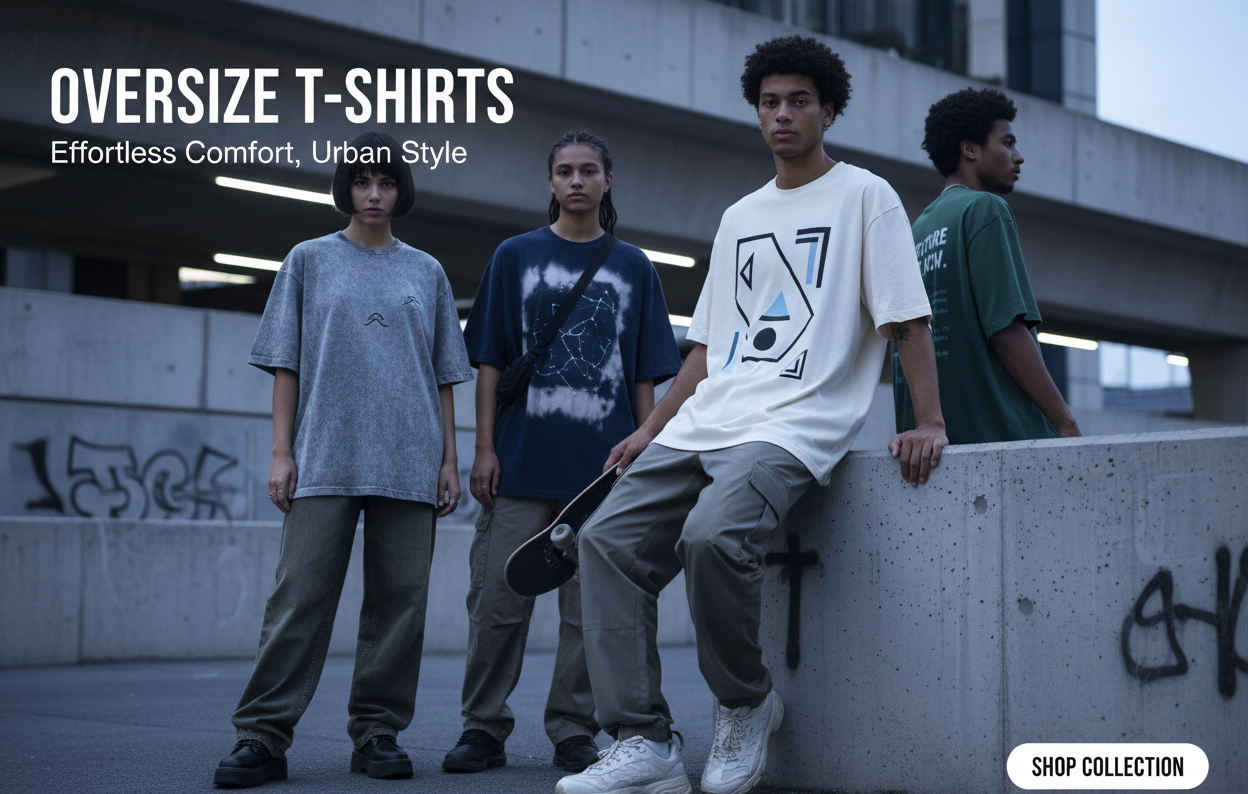 Oversize T-Shirts - Trendy Relaxed FitComfortable oversized t-shirts for men and women in relaxed fits. Modern streetwear style, perfect for casual fashion and everyday comfort. Shop our collection of trendy oversize tees.